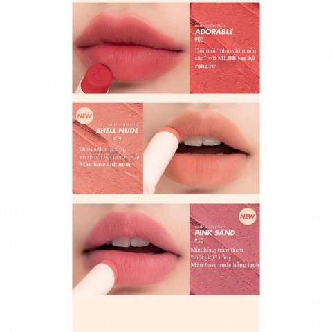 - Công nghệ hạt phấn tạo màu nhỏ hơn bình thường 4 lần giúp son lên màu siêu chuẩn, mịn lì và siêu nhẹ môi.