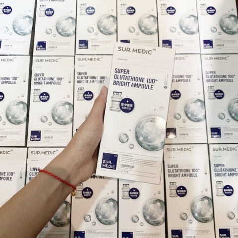 Tinh chất truyền trắng Neogen Sur.Medic+ Super Glutathione 100 Bright Ampoule dạng serum lỏng bôi ngoài da đưa tinh chất đi sâu vào thẳng tế bào da hỗ trợ làm da trắng hồng tự nhiên, hiệu quả sử dụng nhanh và duy trì màu da lâu dài.